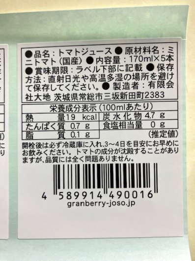 • 完熟トマト100%ジュース「大地からのご褒美」